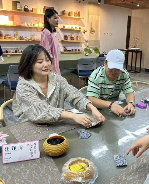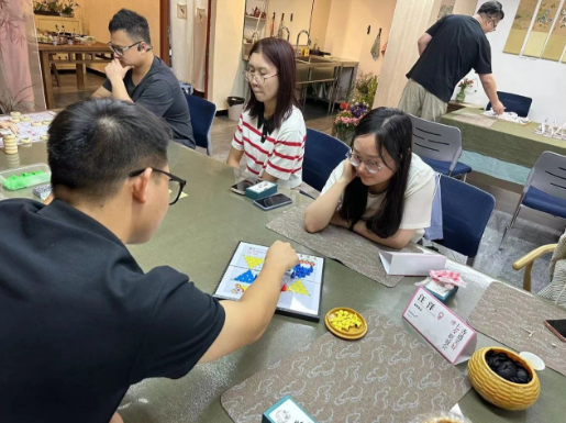 活動設置了“香牌制作、棋牌游戲”等趣味互動游戲。在香牌制作的活動中,木緣空間主講老師從代表性的香料及香具的運用到香牌的配方和制作工序,輕聲細語娓娓道來。隨后,老師分發(fā)調配好的香粉和粘土,安排大家以小組為單位參加比賽,大家互幫互助共同完成了作品,獲勝者獲得了古琴試聽課。